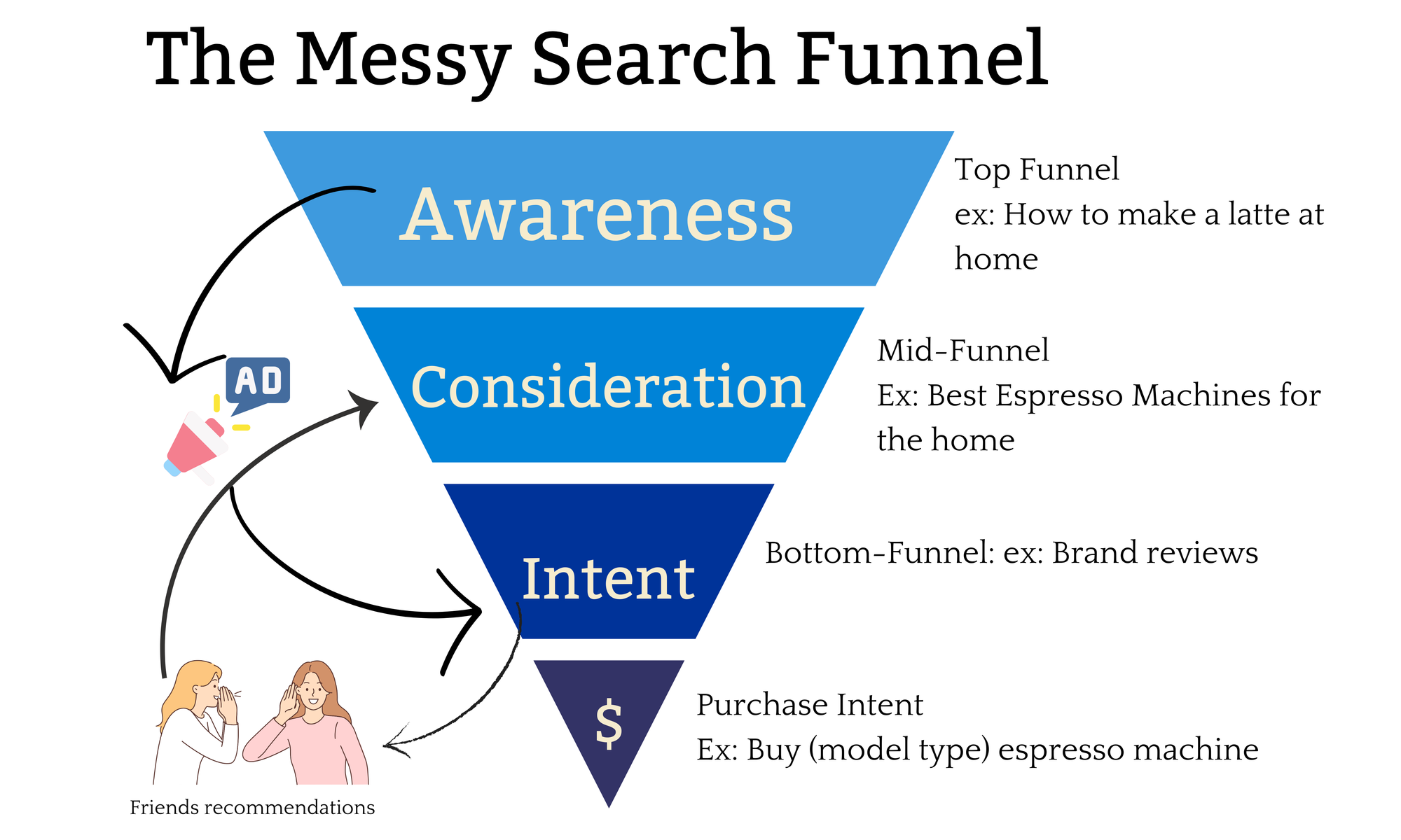 There used to be a comforting simplicity to the search funnel. Awareness led to consideration, consideration led to decision-making, and voilà—your customer clicked “buy” and everyone was happy. But in case you haven’t noticed, funnels don’t work like that anymore. Today’s search journey is more like a rollercoaster that loops back on itself, full of starts, stops, and unexpected detours.