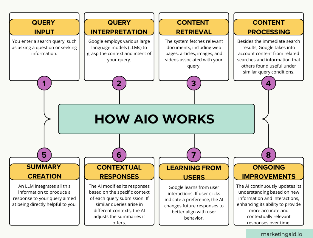 Let’s move on to what we can do to adapt and improve our SEO strategies, but before we can fully understand what we can do to optimize for AIO, we should first have a basic understanding of how AIO works