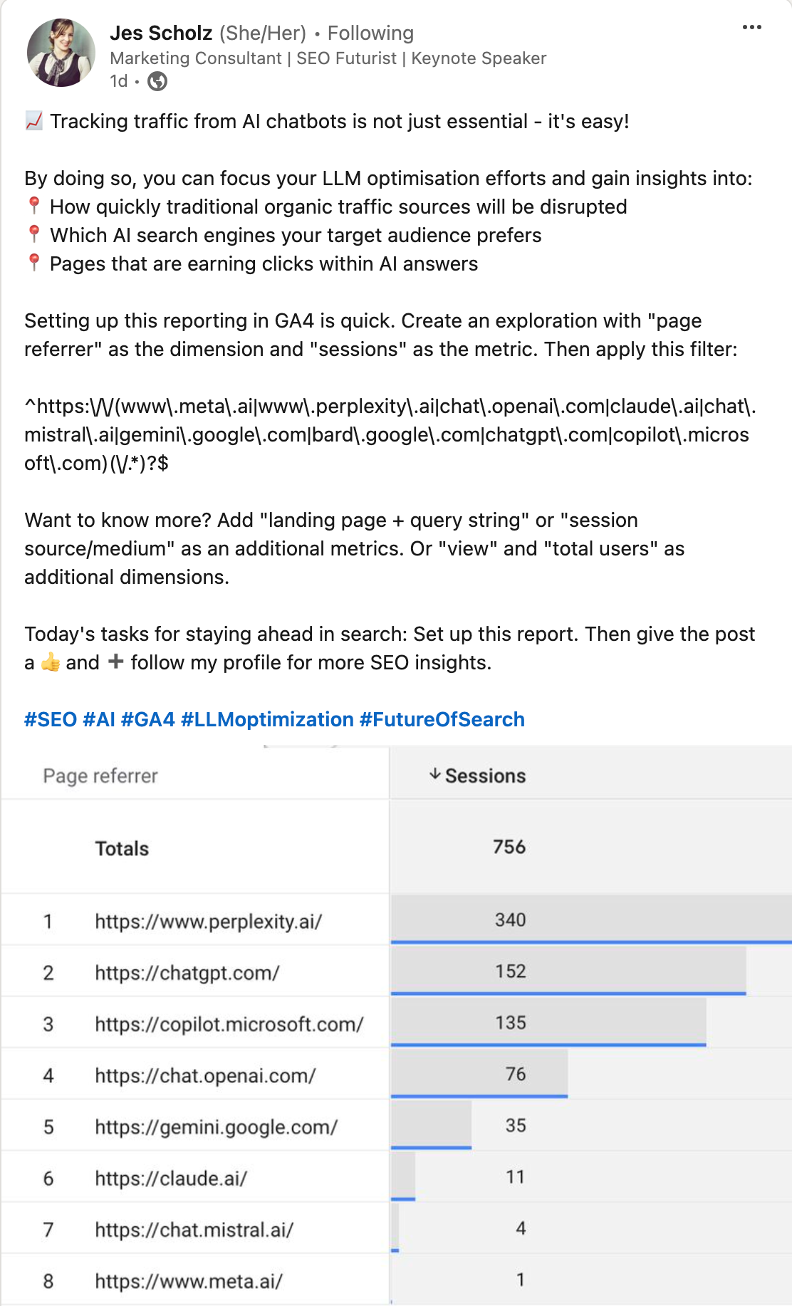This tip comes from the amazing SEO Jes Sholz, follow her on LinkedIn, and get a version of the regex you can copy below