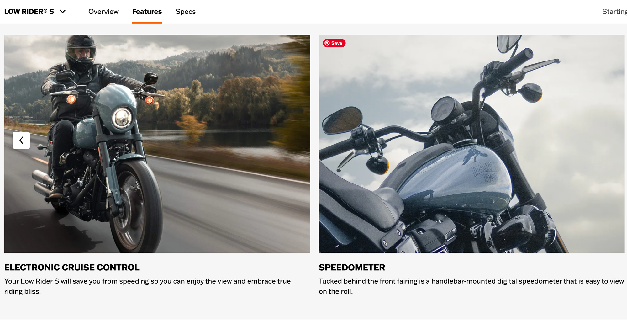 Harly Davidson could have simply listed the "speedometer" on their feature list and called it a day, knowing owners would expect this feature. But they they took it a step further and described what using the speedometer on the road would feel like.